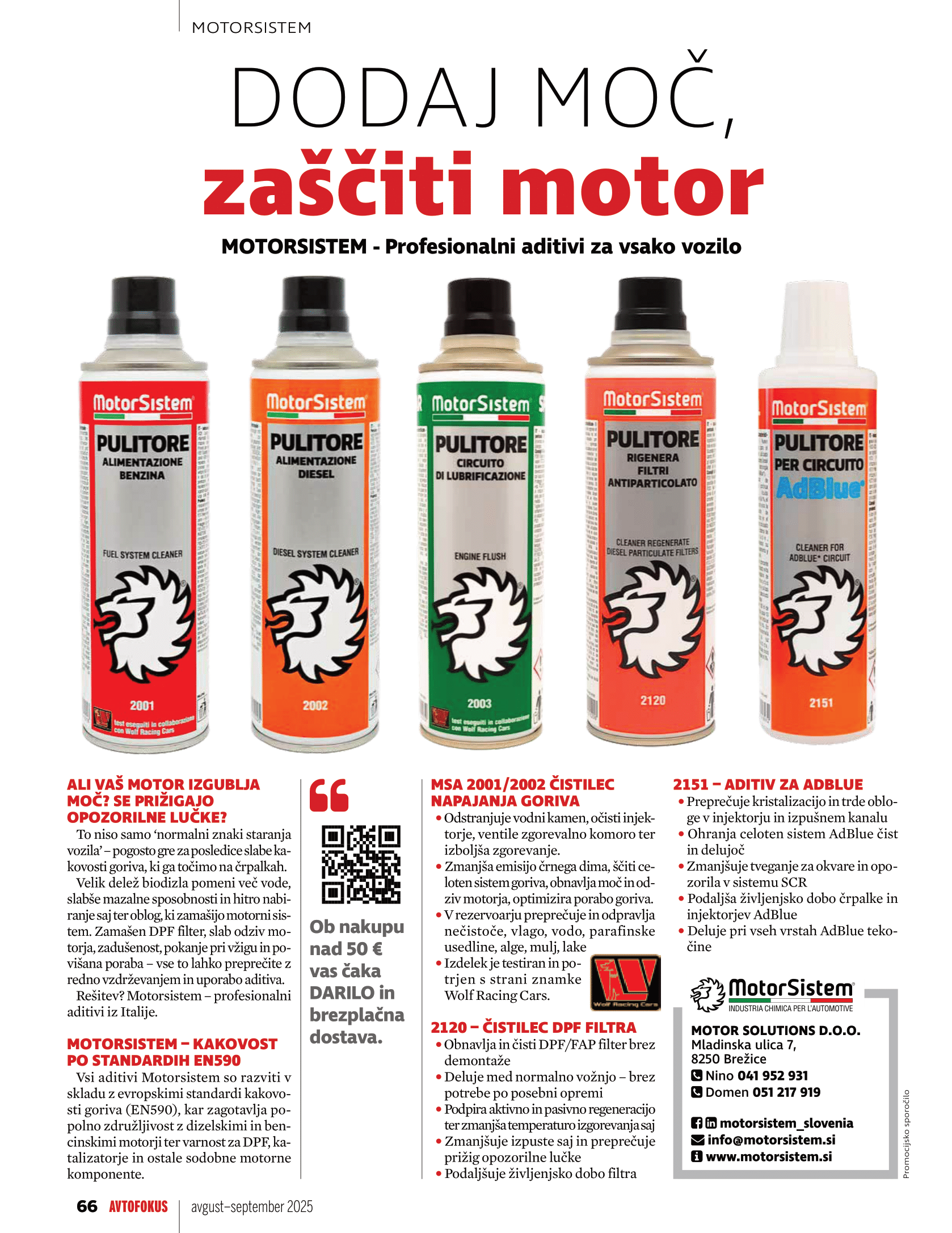 Preberite si članek o aditivih Motorsistem, ki ga je pripravila revija Avtofokus – največja slovenska revija za avtomobilizem, motociklizem in formulo 1.