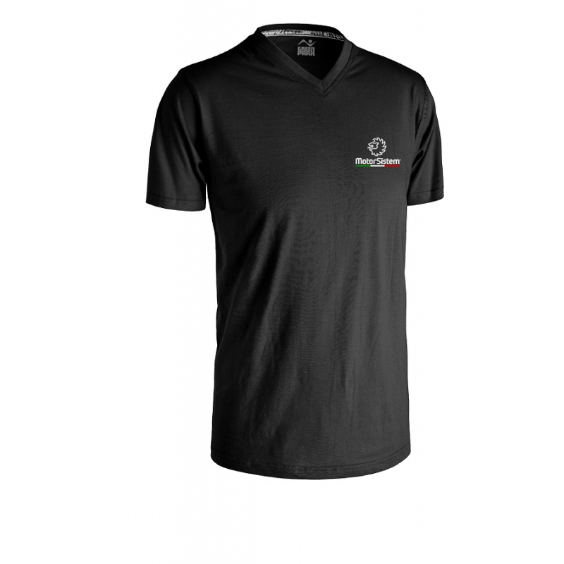 Unisex majica MotorSistem iz črnega bombaža s kratkimi rokavi in ​​V-izrezom. Ta oblačila iz bombaža in mešanice bombaža, posebej zasnovana za profesionalne mehanike in delavce v delavnicah, so odporna na odrgnine in madeže. Antracitna barva je idealna za delo z mazivi, olji in mastjo.